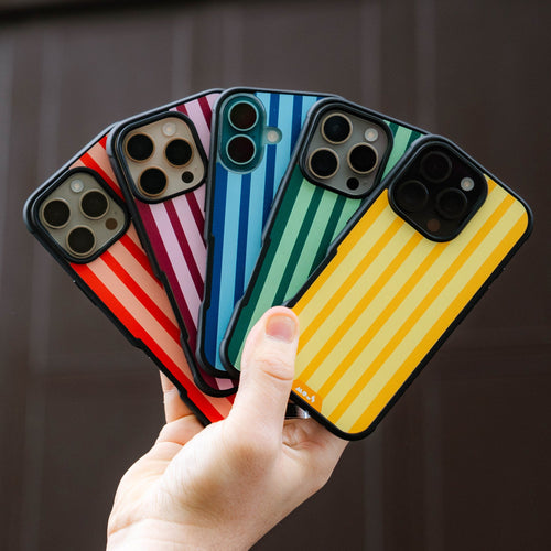 Inspired by old-school sweet shops, this case design pairs bold stripes and punchy colours with a hit of nostalgia. Fun, expressive and built to protect.
