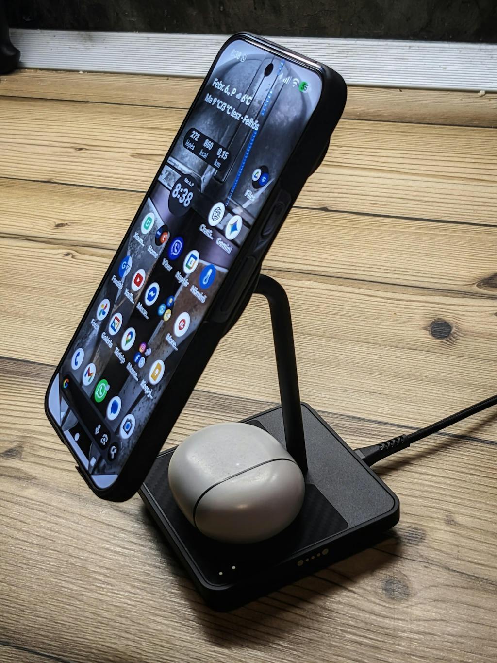 • This Qi2-certified charging stand delivers up to 15W wireless charging for compatible iPhone, Pixel and Samsung devices.
