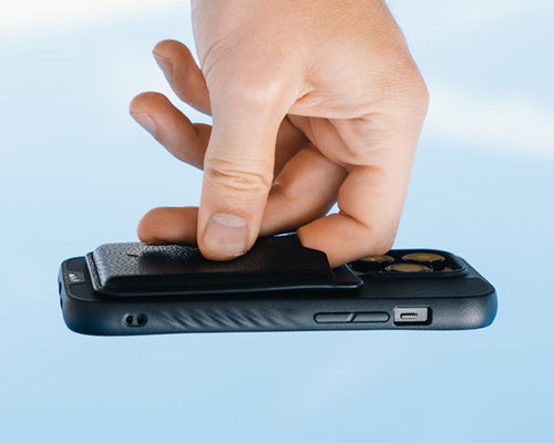 Das müssen Sie nicht befürchten. Unser MagSafe® Compatible Card Wallet 2.0 bietet einen extrem sicheren Halt für MagSafe und -Hüllen, da es mit einer Reihe von starken Magneten und einer Reihe von Silikonpunkten (mehr als 100) entwickelt wurde. Die Magnete halten das Telefon mit dem wallet verbunden, und das Silikon bietet Widerstand gegen alles, was dazu führen könnte, dass Ihr wallet abrutscht.