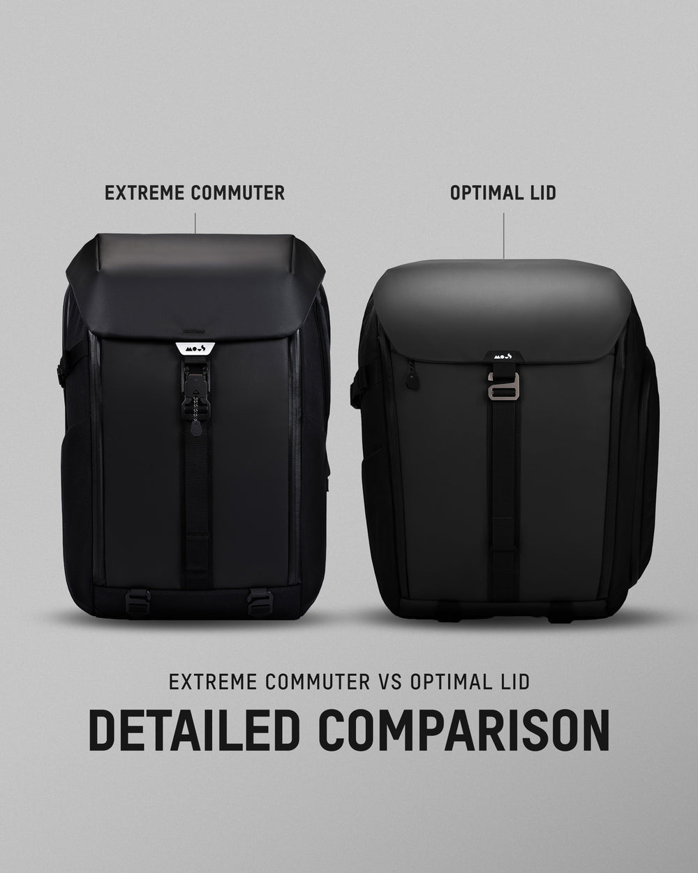 The Optimal Backpack retains the best elements of our Extreme Commuter range while reducing weight and maximising storage. Both offer tech protection, durability and weather resistance, but they differ in design, materials and organisational capacity.