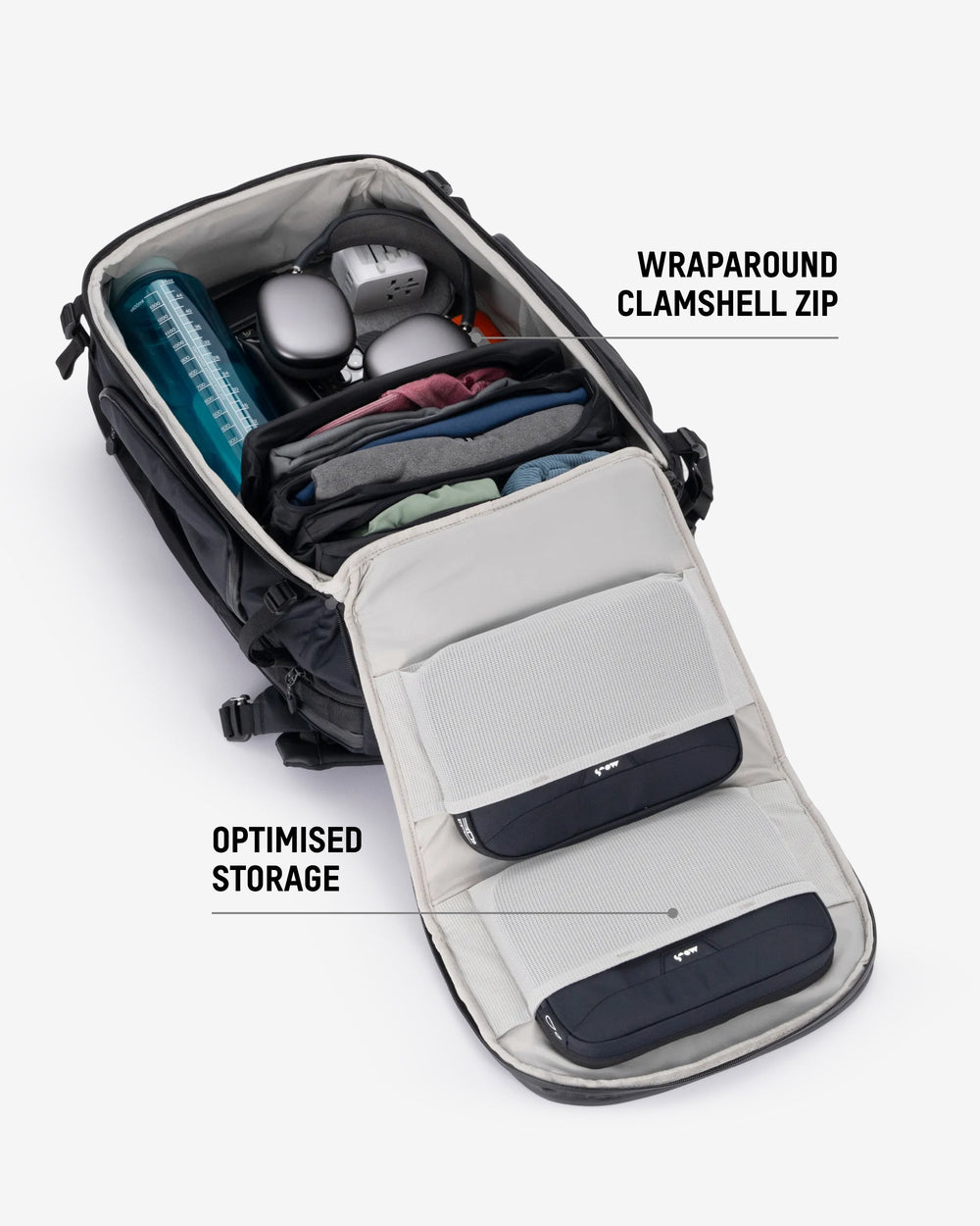 • Customise with modular add-ons like a toiletry pouch, tech organiser and compression wardrobe.
