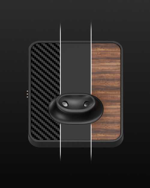 Choose between matte black for minimal style, aramid fibre for a technical look or walnut for natural warmth. Each plate is designed to blend seamlessly into your space and match your personal style.