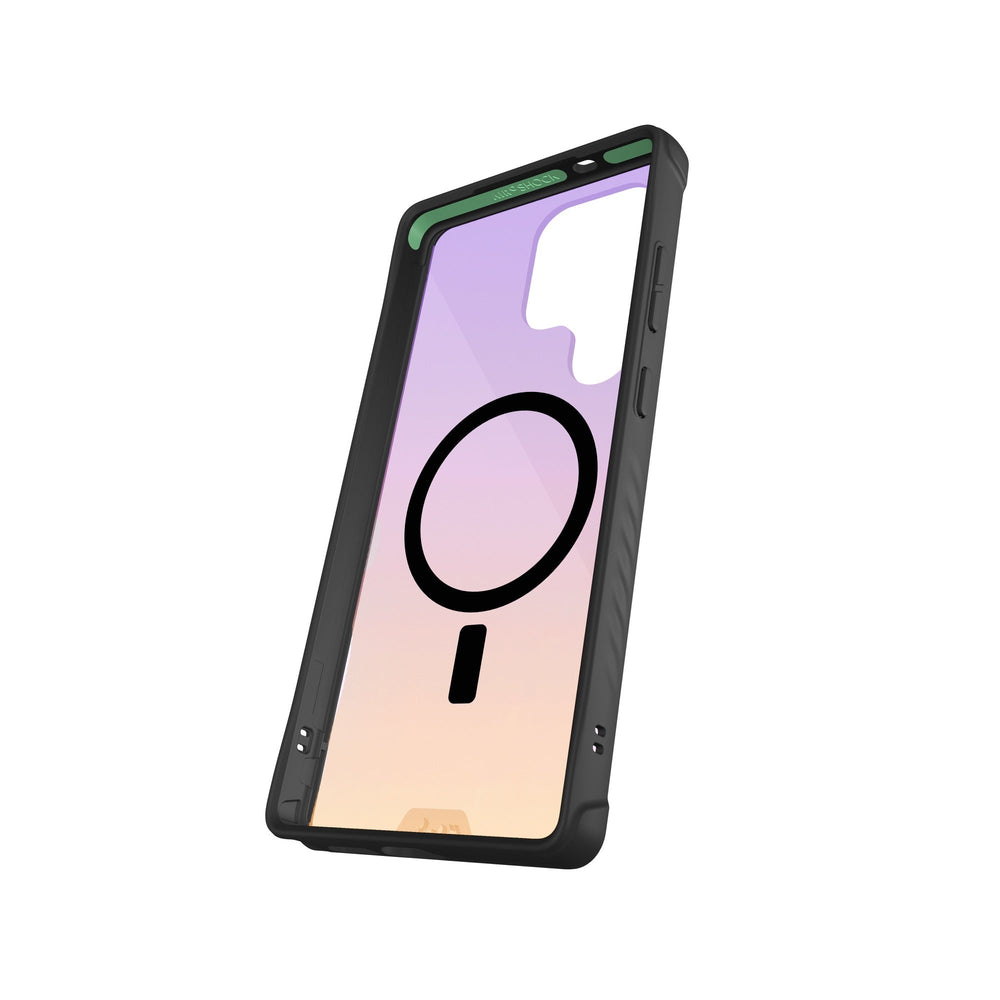 Top and bottom of the case is enhanced with AiroShock®. Designed with a MagSafe® compatible magnetic array. Built with polycarbonate and TPU.