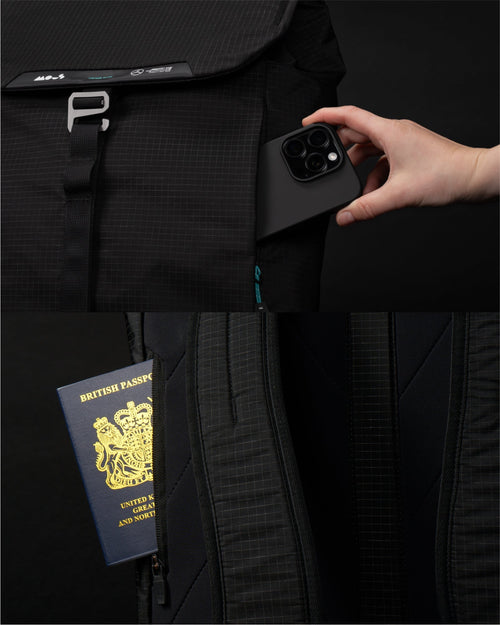 Different people have different preferences, so we reimagined our design process for this backpack. The Extreme Commuter range prioritises top-notch tech protection and functionality, with AiroFoam® impact-absorbing technology and a more structured build. In comparison, our Day Backpack embraces a minimalist, effortless aesthetic in a lighter design. Both backpacks offer seamless access to the main compartments – just in different ways.
