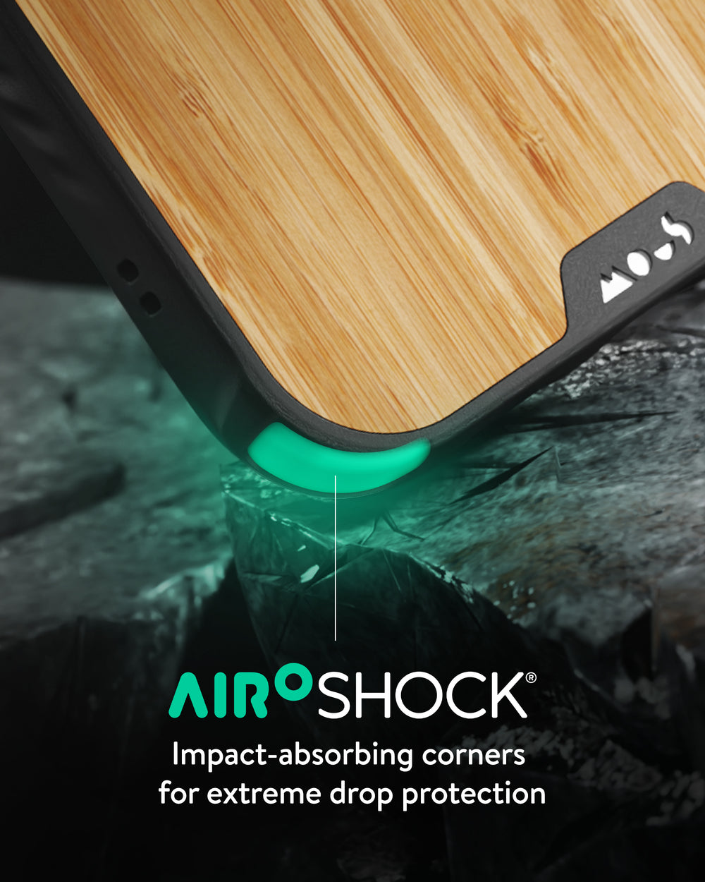 AiroShock® is a high-impact material, engineered to absorb and disperse energy during drops and shocks. Designed to slow the rate of deceleration upon impact, AiroShock® cushions your device by reducing the force it experiences when it hits the ground.