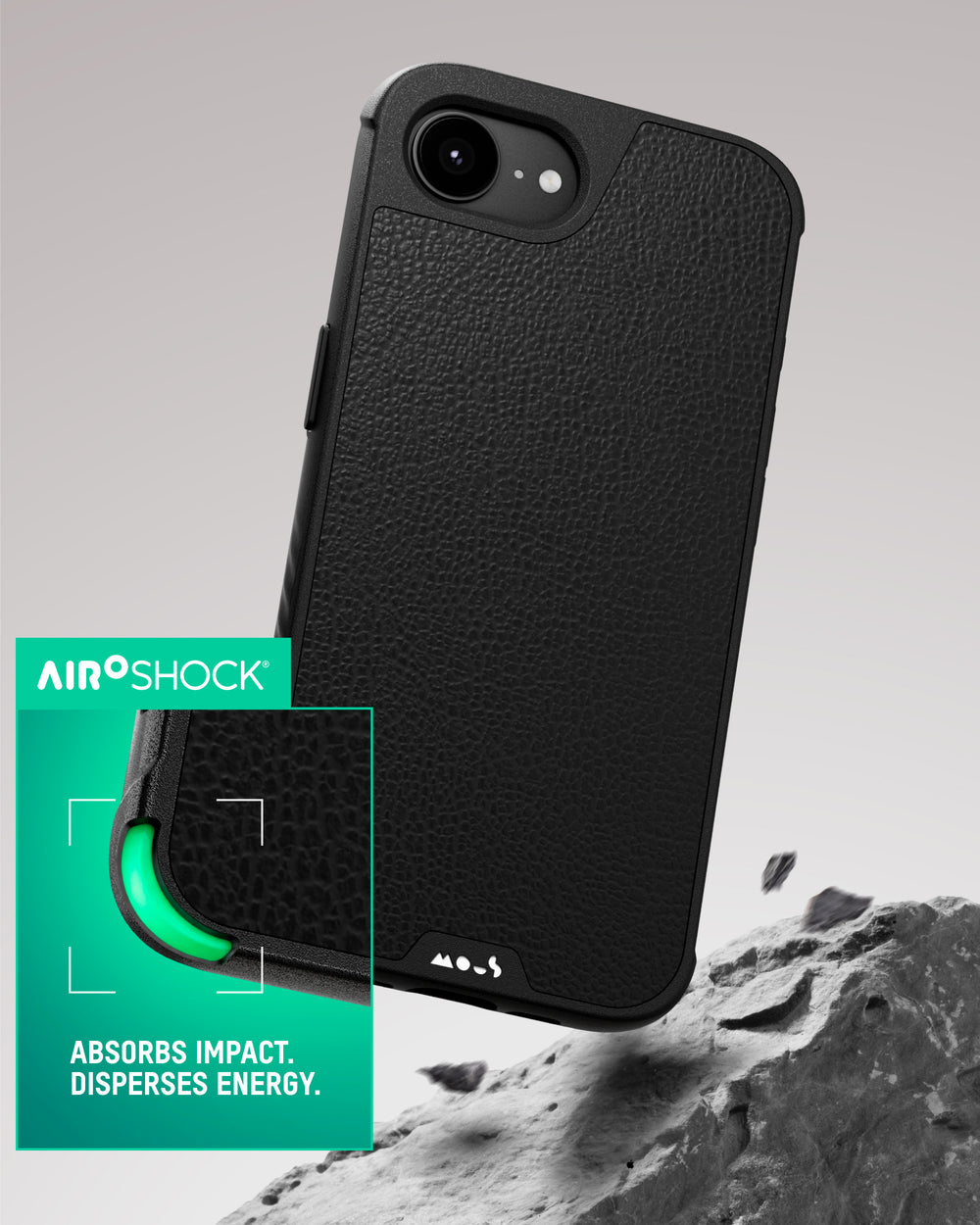 Reinforced corner bumps with AiroShock® technology, raised edges around the screen, camera and Camera Control button, and ultra-rigid materials provide top-tier protection against drops and shocks.