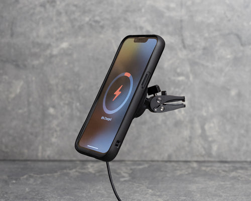Get rapid charge speeds and hands-free functionality on the go with this charging car vent mount.