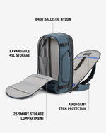 A carry-on backpack designed for seamless travel. With expandable storage, smart organisation, AiroFoam® tech protection and durable materials, it’s built for every journey.