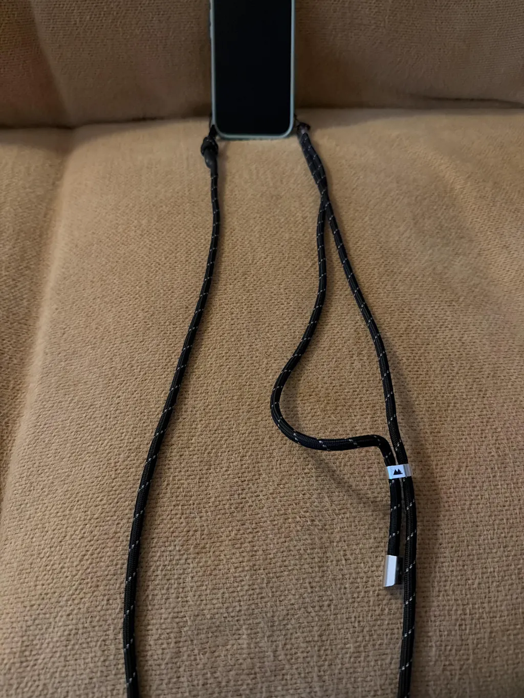 Our phone sling comes with two pull tabs which thread through the eyelets on your case and has carabiners on the end to clip onto the pull tabs.