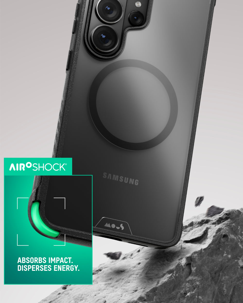 AiroShock® is a high-impact material, engineered to absorb and disperse energy during drops and shocks. Designed to slow the rate of deceleration upon impact, AiroShock® cushions your device by reducing the force it experiences when it hits the ground.