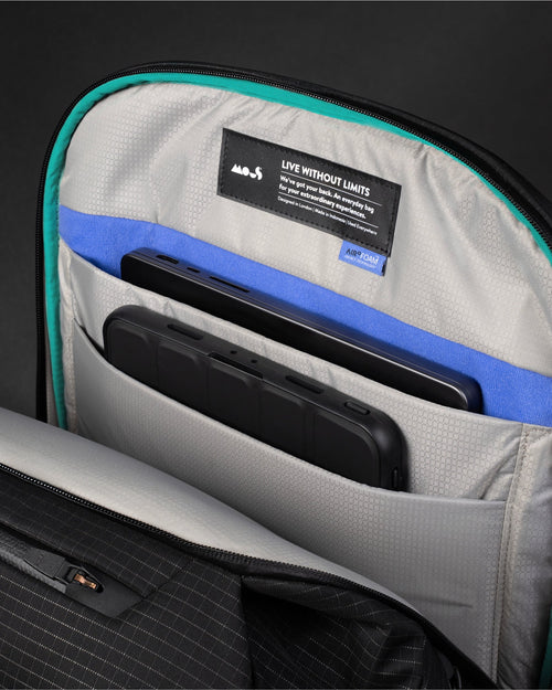 18 purpose-built compartments, internal and external, for all your essentials – without unnecessary bulk.