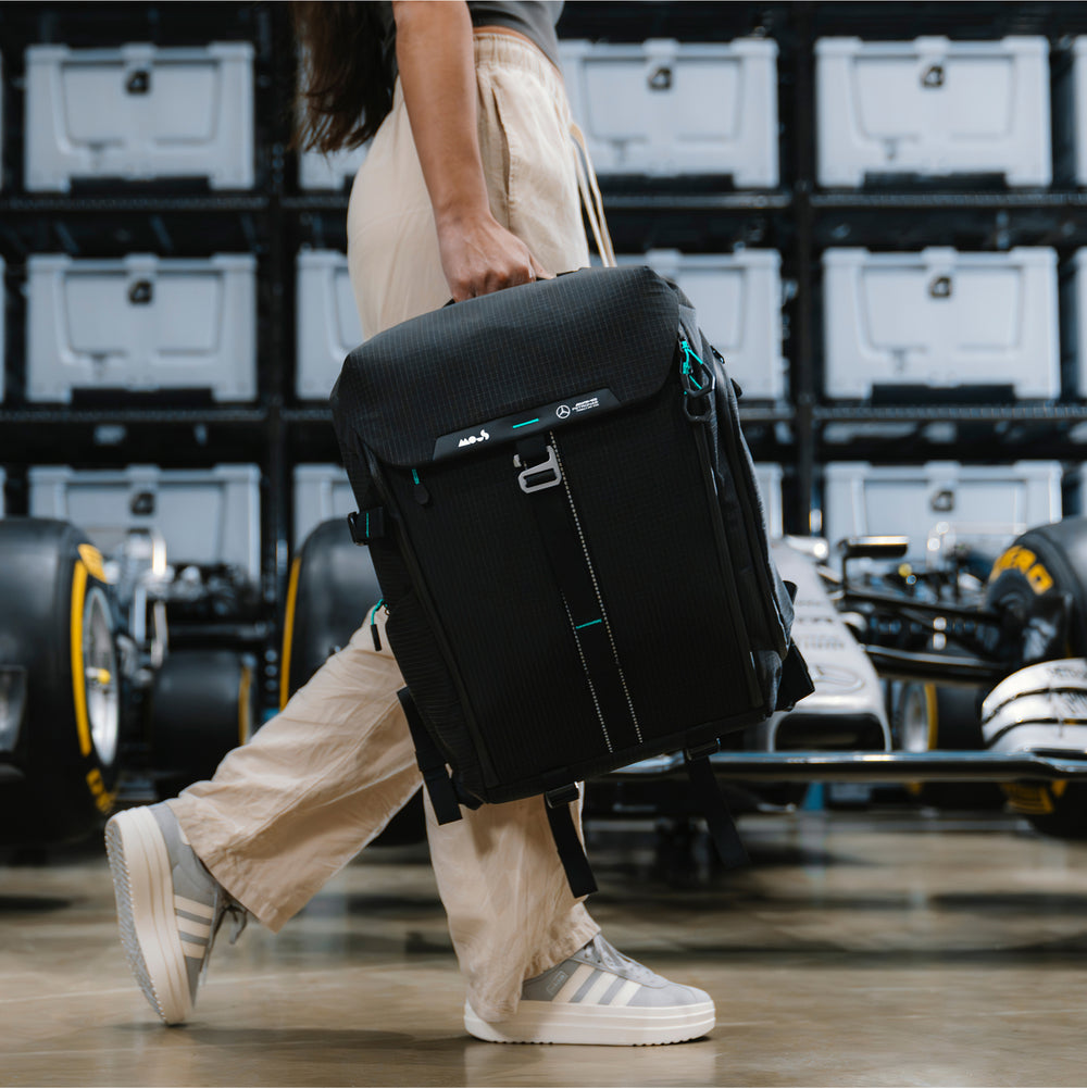 • Official team backpack, co-developed with the Mercedes-AMG PETRONAS F1 Team for elite, real-world performance.