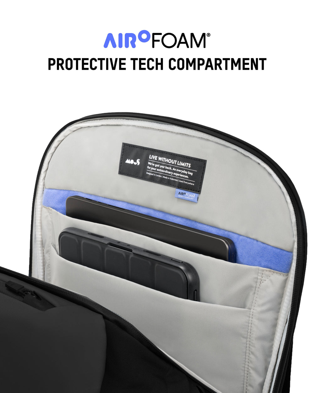 • Protective tech compartment with AiroFoam® absorbs shock from drops.