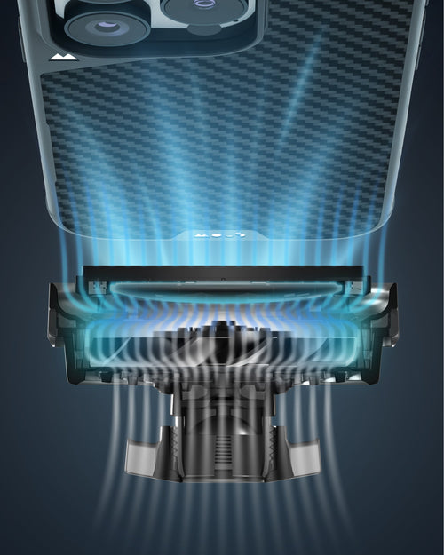 • Airflow is directed to cool both the charging coil in the mount and the one inside the phone, reducing heat build-up on both sides of the charge and enabling a longer 15W fast-charging experience.