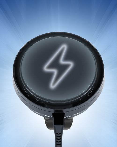 DualCool is an active-cooling system, featuring a high-speed axial fan that cools both the mount’s coil and your phone’s coil. Most chargers only cool one or the other. By reducing heat on both sides of the charge, DualCool prevents thermal throttling, allowing your device to charge at 15W for longer. That means faster, more consistent charging, even on hot days or during long drives – up to 52% longer 15W charging compared to other active-cooling chargers.