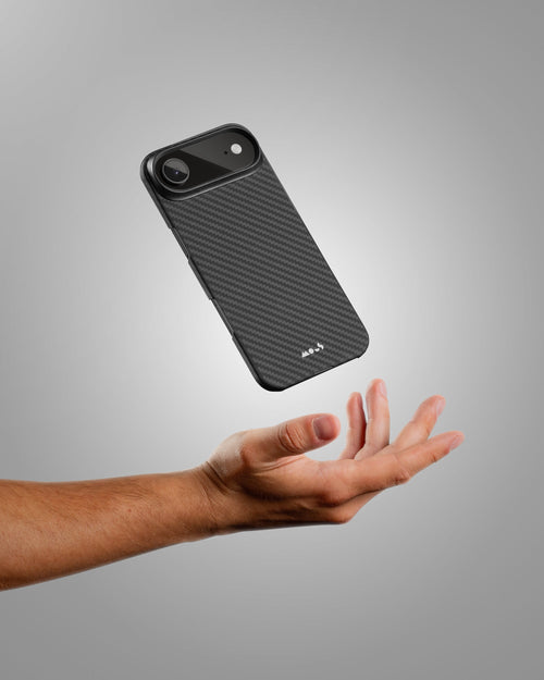In our Super Thin case, we use moulded aramid fibre to create a rigid, impact-resistant shell that protects your phone against everyday knocks and wear without adding bulk. The result is a case that combines extreme durability with an ultra-slim, pocket-friendly profile.
