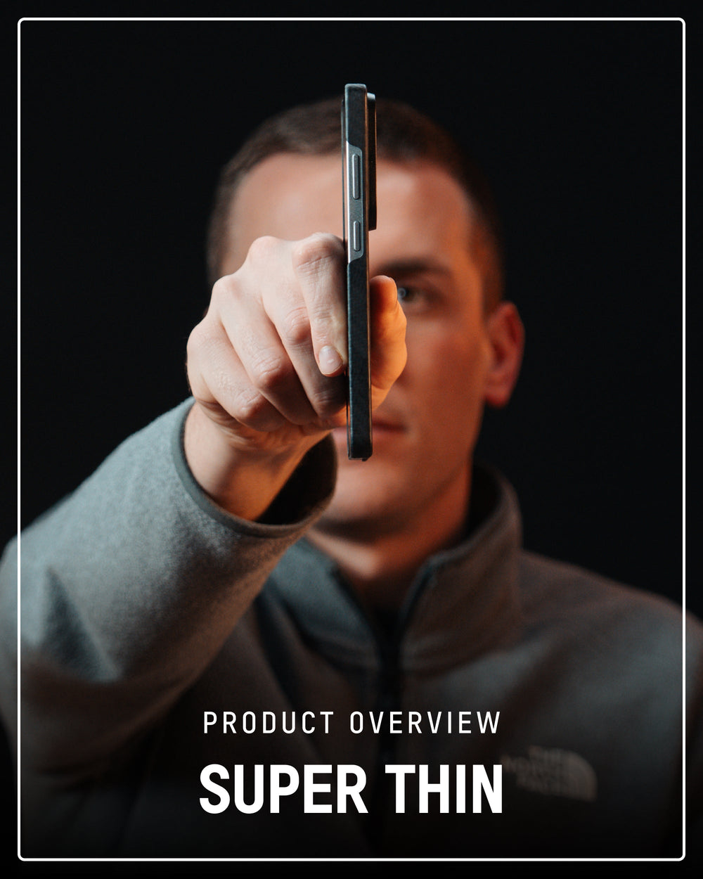Super Thin Clear is built to prioritise thinness and clarity over maximum drop protection. Limitless and Clarity offer higher impact resistance, but this case still provides dependable everyday durability thanks to its rigid polycarbonate shell. Protective UV/anti-yellowing and scratch-resistant coatings help it stay clearer and tougher for longer.