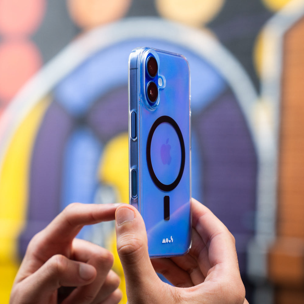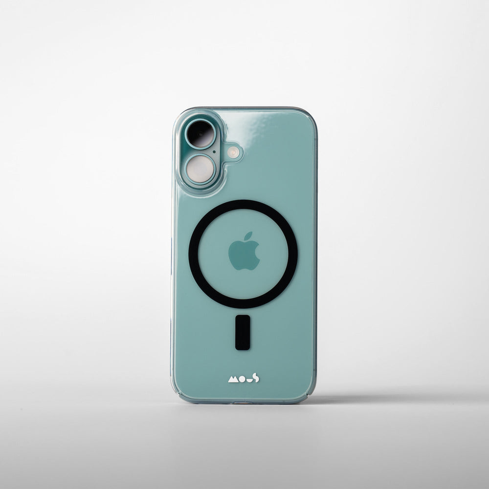 Our thinnest clear case, made from crystal‑clear polycarbonate with UV- and scratch‑resistant coatings. Includes cut‑outs for button access and full MagSafe®/Qi2 compatibility.