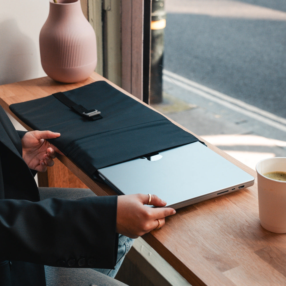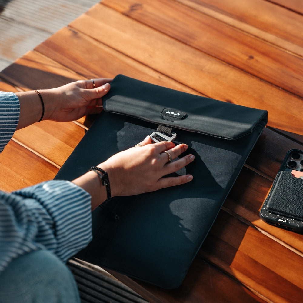 Our MacBook Pro Sleeve and MacBook Pro Sleeve with Handle are tailored specifically for MacBook models, with AiroFoam® technology for extreme tech protection. Our Universal Laptop Sleeve is designed for broader compatibility, making it suitable for a variety of laptop models beyond just MacBooks. It offers a lighter level of protection, with water- and scratch-resistant materials and a lightweight design inspired by our Day Backpack.