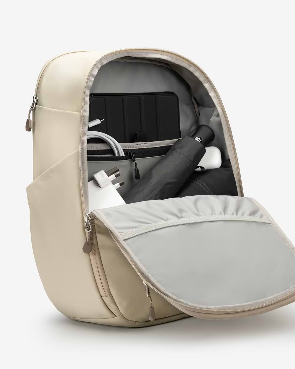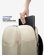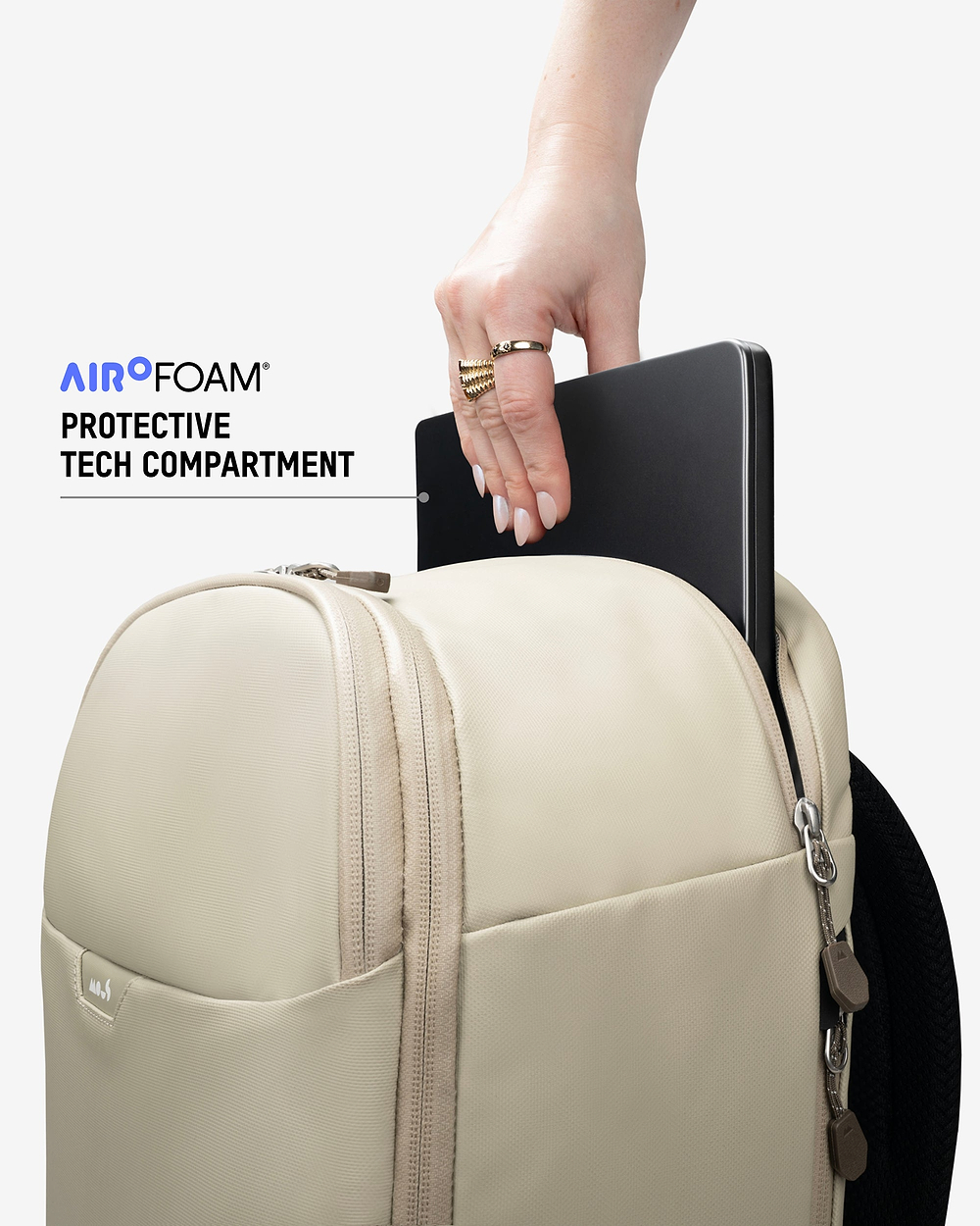 It features a dedicated rear tech compartment with AiroFoam® built into the base to absorb impact from drops and knocks. The sleeve is padded and softly lined to reduce pressure and prevent scuffs or scratches during daily carry.